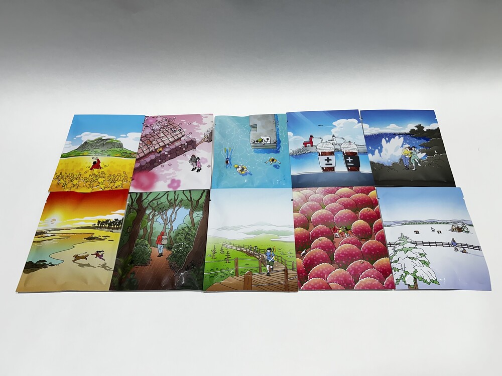 저희가 경험한 제주를 생각하며 작은 위트가 있는 풍경들을 그려 보았습니다.