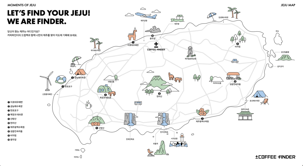 홈페이지 제주커피여행 탭에서 커피파인더가 추천해주는 지도를 참고해서