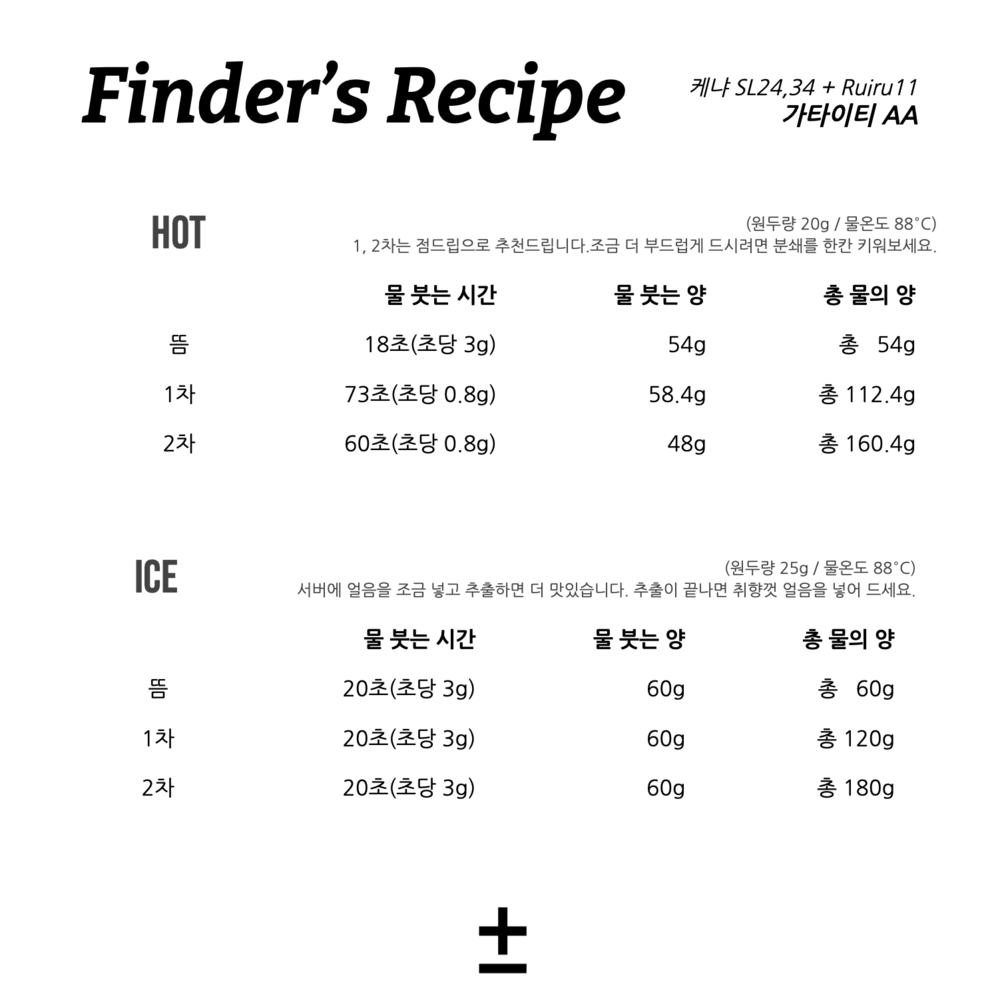 이번 소개해주는 케냐는 비터스윗의 정석이라고 표현하고 싶습니다. 씁쓸한 비터감이 올라오는데 뒤에 받쳐주는 스윗함은 정말 맛있는 카카오닙스를 한입 먹은 듯하게 느껴지는데요.