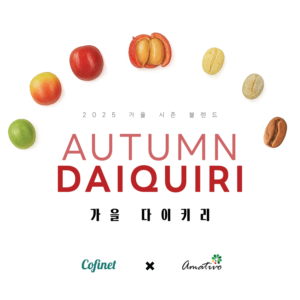 이번 블렌드는, 사용된 원두 중 하나인 **‘프룻 다이키리(Fruit Daiquiri)’**에서 이름을 따왔습니다.‘다이키리(Daiquiri)’는 쿠바의 작은 항구 마을 이름에서 유래한 클래식 칵테일로,럼과 라임, 설탕 — 단 세 가지 재료로 완성됩니다.